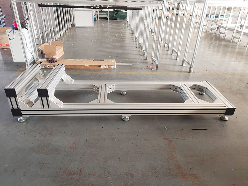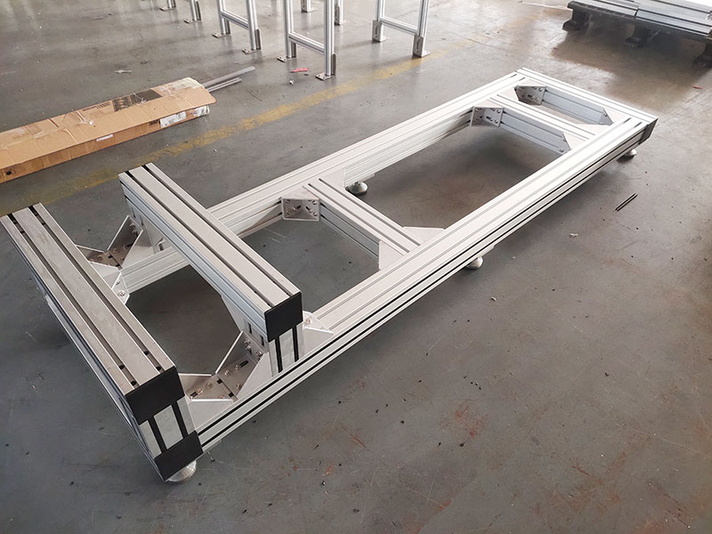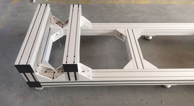 作為工廠精密設備的支撐底座,使用100100香蕉视频下载地址,非常堅固,底部安裝6個金屬蹄腳,承重力強,外觀精美不生鏽,橫梁可調節位置,方便機器安裝。